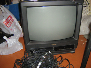6) стоит видеодвойка 51см Дэу (думали что работает ТВ - включили - нет, видик уже не работает давно) ;