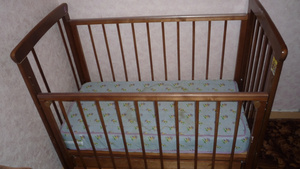 2. Детская кроватка с матрасом, дополнительно есть "балдахин" и "бортики". Состояние нормальное, требует не большой доработки,спать это ребенку не мешает,палки все есть,только где-то лежат.