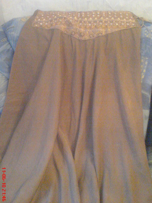 4. Для театральной студии юбка /длинная, объем по талии регулируется шнурком, впереди вышивка пайетками/
