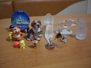 Отдам тарелку Сочи, стеклянные туфельки для Золушки, быка,обезьяну, игрушки киндер-сюрприза, бульдога с вывеской, собачку и змею из стекла...