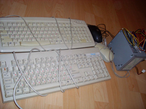 1) компьютерный хлам - 2 клавиатуры, 2 компьютерные мышки, блок питания.