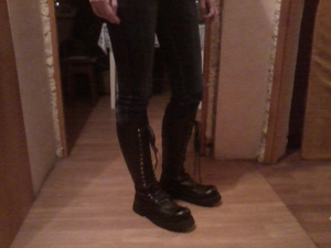 9)бриджи из плотного черного материала, ближе к джинсе, 44-46р-р (маркировка 28), тянутся немного совсем. мне на рост 165 ниже колена. 2кармана спереди, 2 сзади, все замки целые, стразы на месте, единственный минус - немного полиняли на выступающих частях. хорошо смотрятся с кофтой 2-в-1 из предыдущего сообщения т.к. стиль и фурнитура похожи)