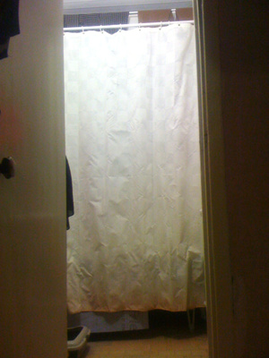 Имеется для обмена на вкусняшки штора в ванную комнату. Высота 2 м., ширина 1,6 м. Прищепочки прилагаются.