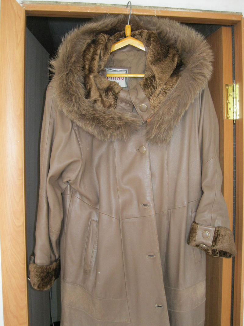 пальто кожаное, цвет коричневый (р-р М на 46 р-р примерно), пальто зимнее, цвет темно синий, воротник песец (р-р46)его немного почистить надо