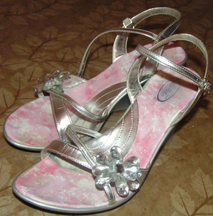 2) босоножки на танкетке серебристые (стелька розовая), удобные, 39р-р