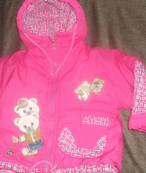 Отдам осеннюю курточку на синтепоне для девочки 2-3 года(размер не знаю, померила длина 40 см и от ворота до запястья 40 см), кармашек в виде сапожка.