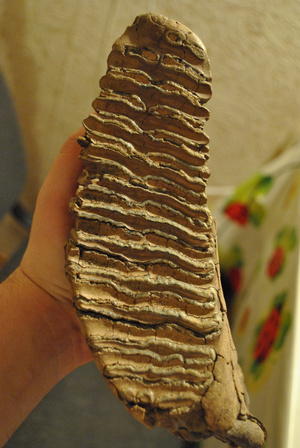 У меня на полке лежит зуб мамонта. По размерам около 20 см... (в длинну) Фото приложено. Хочется продать, но не могу определиться с ценои.. Пожалуйста, пишите мне только в "личку" может кто предложит дорого... Так же мне не мало важно мнение специалистов, например интересно, сколько же все таки лет, по-видимому, мамонтенку... И, не мало важно, зуб не лакерованный, не крошится, да и просто жалко отдавать....