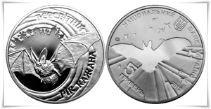 Год летучих мышей, украинская юбилейная монета, тираж, кажется 20000. Цена должна быть в районе 500 рублей. Точнее - надо узнавать. В следующем месяце планирую закупку украинской юбилейки (покупка на Украине)... Где сейчас брать... Ну походите по базару - поищите... Кто-то наверняка продает...