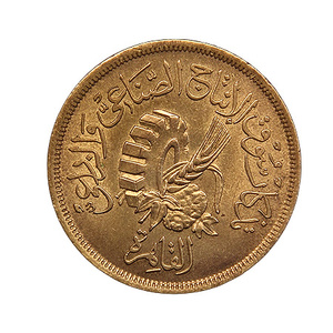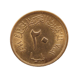 Первая монетка - 20 мильем 1958 г. ОАР (Объединенная Арабская Республика). Сельскохозяйственная и промышленная выставка в Каире. По Краузе - КМ# 390.