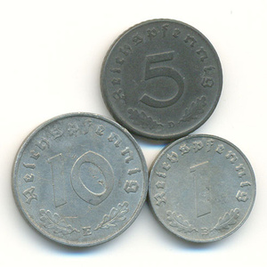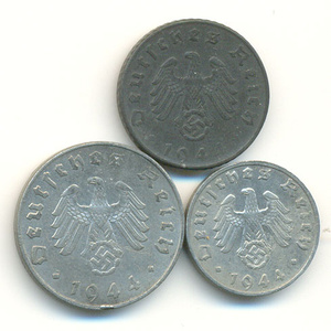 • 1, 5, 10 рейхспфеннигов 1944 года. 150 руб.