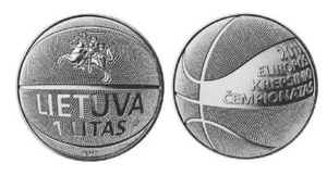 • Литва. 1 лит 2011 год. Чемпионат Европы по баскетболу