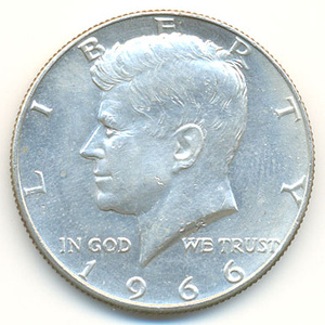 • 1/2 доллара 1966 года. 300 рублей.