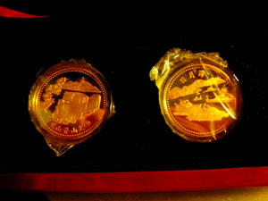 В те годы, в Китае рассчитывались как раз монетами с квадратными дырками. Теми, что сейчас часто называют монетами счастья. Правда, сейчас в 99% случаев вместо них подсовывают сувениры...