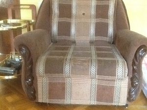 Кресло изрядно потрепано котами, использвали вместо когтеточки, по хорошему нужна перетяжка, но кому эстетическая составляющая не важна - само кремло крепкое, прослужит долго.