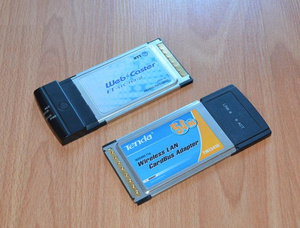 Две PCMCI WiFi карты 54 мбс для старых ноутбуков (обе рабочие, одна японская, вторая китайская). Драйверов нет, но найти в интернете можно,