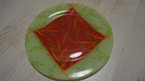 4. Тарелки большие плоские, цветные (стекло) - 5 штук