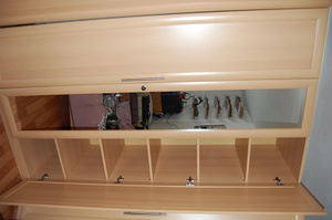 Шкаф поздней советской поры, с антресолями. Цвет - темно-коричневый. Полировка.