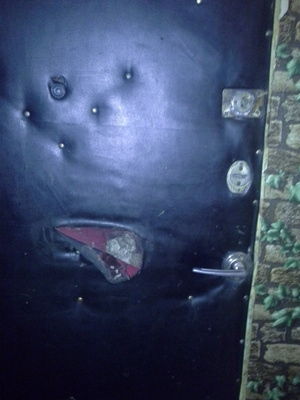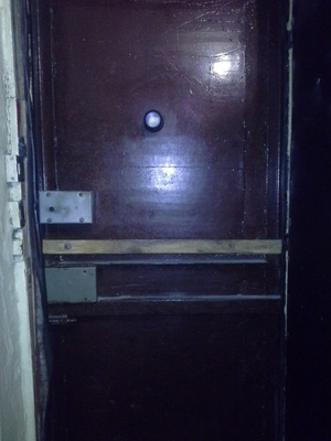 Отдаются две входные двери, размеры - хрущевский стандарт. Деревянная без коробки, с одной стороны "матрисик" из ваты и черной кожи дермантина, слегка побитого временем и жизнью. С глазком, с замками, закрывающимися из квартиры (ключей нет).