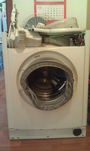 Машинка была разобрана чтобы поменять подшипник, но в сервисе сказали, что барабан не разборный, поэтому нужно его полностью менять, что практически равноценно новой машинке. Также заодно прочистили-промыли резинку.