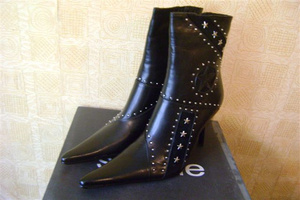 Босоножки черные кожаные на танкетке, размер 38, ремешок через щиколотку. Рисунок из перфорированной кожи.