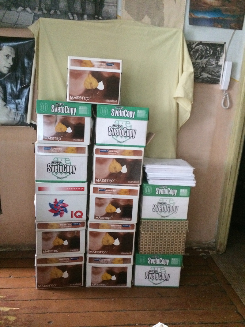 отдам 15 коробок односторонней (с одной стороны всякая офисная печать) бумаги А4 в коробках,