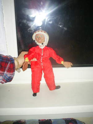 Уточняю для всех, кто написал в ЛС. Кукла старенькая, большая - почти в рост годовалого ребенка, при надлежащем уходе наверняка снова пойдет, держась за "мамину" руку и заморгает глазками.