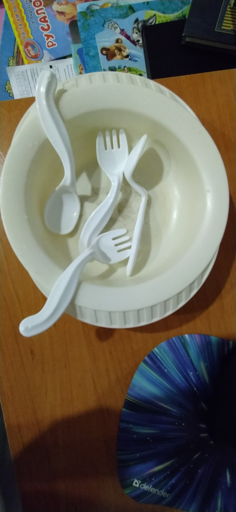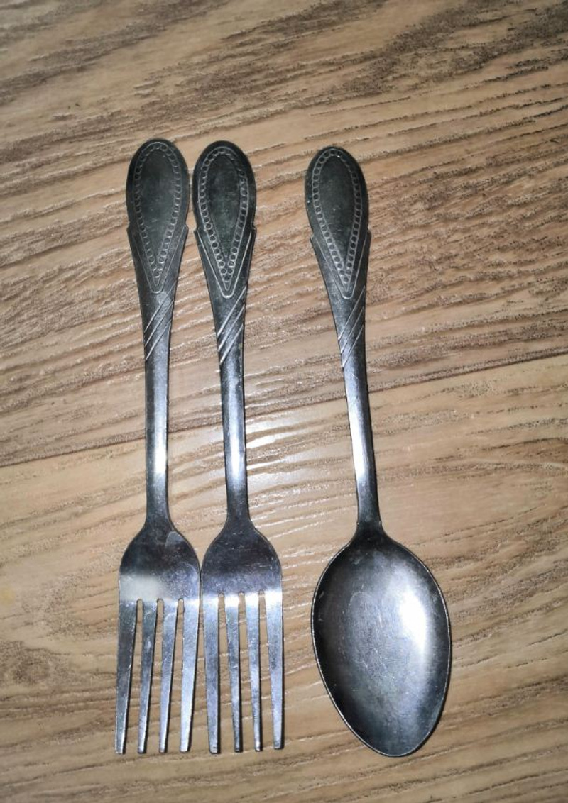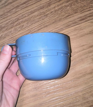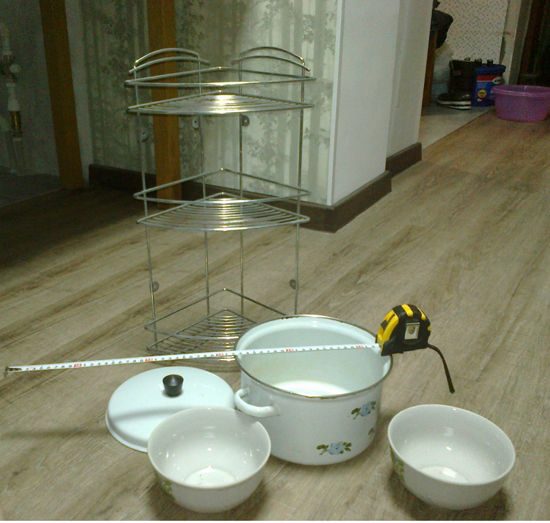 2. Кастрюля, чашки, полка угловая, все целое, чашки так и вовсе по-моему новые.