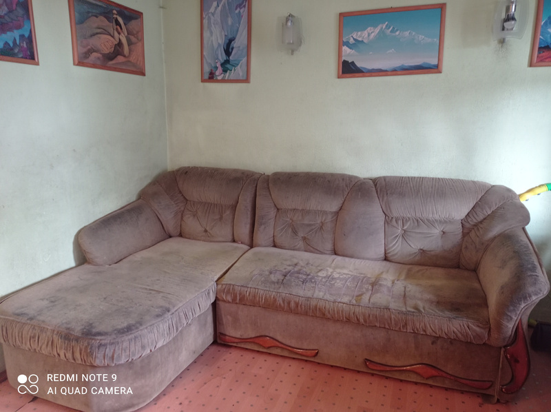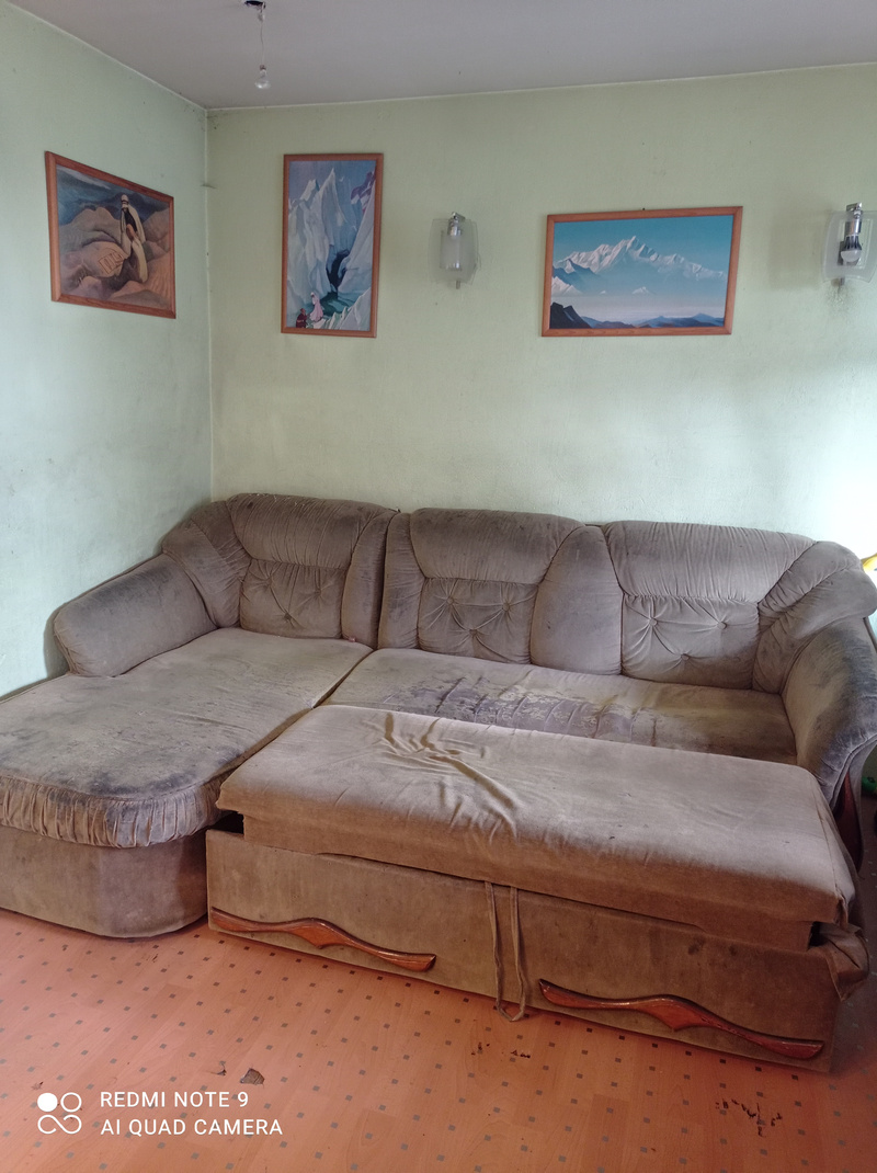 Диван. Вместительная левая часть. Справа раскладывается. Всё механизмы рабочие. Обивка изношена временем. Вынести поможем. Самовывоз с Октябрьского района. Актуально до конца месяца