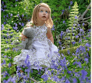 Глазки голубые, как вокруг цветочки.