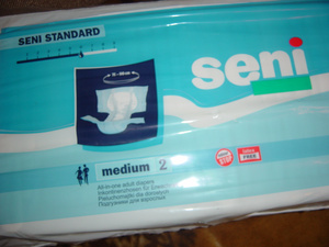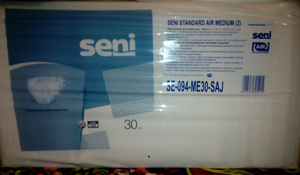Памперсы для взрослых seni 30 штук 8 пачек и tena slip 30 штук 3 пачки размер М по 500 рублей.