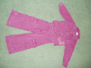 Продам вельветовый костюм на девочку 3 лет (пиджачок и брючки-клеш), фирменный, очень красивый, цвет фуксия, состояние отличное. Прошу 600 рублей.