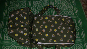 Продам cумку-переноску для младенца "Бамбино" с мягкими бортами и жестким дном. Есть пристегивающийся на кнопках мягкий купол, по бокам карманы, длинные ручки. Цвет хаки, по периметру "разбросаны" желто-белые уточки, жирафы, мячики:) На двух молниях. Люлька легкая, удобная, мы спали в ней на балконе, на даче и даже этим летом на природе под деревцем. Состояние отличное.