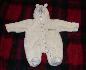Продам комбинезон демисезонный,на 4-6 мес., п-во Германия, "Медвежонок". Сверху искусственный мех белого цвета, подклад х/б трикотаж беленький в мелких мишках.Ножки закрыты, наискосок от шеи до ступни "молния". Комбез оч. удобный, довольно теплый, подойдет и мальчику, и девочке. Цена 400 р