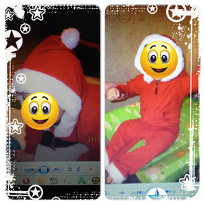 На младенца есть костюм для фотосета мишка(новый) и годовалого костюм Санты.