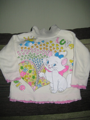 И еще....Водолазка, хлопок 100%, горловинка отличная, эластичная, легко одевается (без слез!), где-то на 8-12мес. Цвет приятный сливочный.120р.