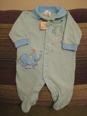 Забавный трикотажный комбезик, унисекс, маркировка на 9 мес., сзади застежка - лягушонок, кач-во оч. хорошее, 180р. б\у максимум раза 2-3, забыли про него, когда вспомнили, был впритык!