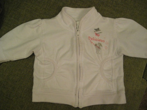 Еще одна кофточка, тоже очень удобная, по типу олимпийки, белая, трикотажная.. на возраст от 6-7 мес и до годика примерно. Сост. тоже хорошее, хоть и послужила верой и правдой! 200р.