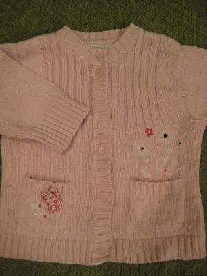 Кофточка украшена декор.вышивкой над кармешком и сзади у горловинки, на кармашке-мышка-висулька. Ваша малышка ее полюбит! 200р.
