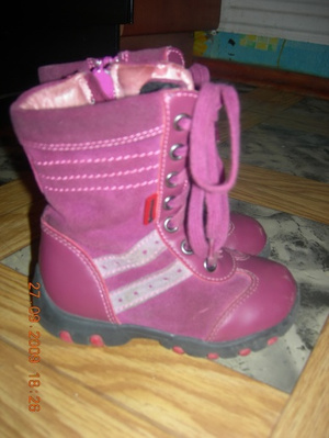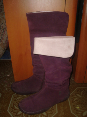 Демисезонные замшевые сапожки для девочки, размер 35, "Антилопа". А-ля ботфорты. Цвет бордово-сиреневый, наверху розовые отвороты. Продам рублей за 500.