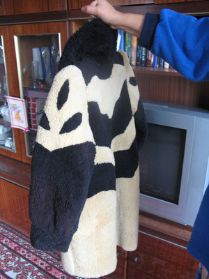 Продается шуба на девочку 6-8 лет, мутоновая комбинированная, индивидуального пошива. Длинна по спинке 75 см, ширина по спинке под рукавами 45 см. Цена 1000 руб.
