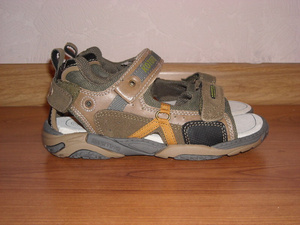 Класснючие сандалики, сверху замша, внутри кожа - мягчайшая, две липы. Sky-effects, anti-shok в пятке, подошва гнется в нужном месте, жесткая пятка.
