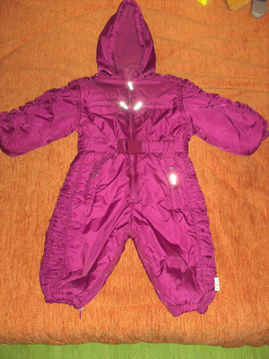 маркировка 80, реально от 70 до 80 см.. ( или это у нас просто такие ноги длинные ). Так что с 70 см, на размер 74/80. Очень необычный и стильный. Капюшон на флисе, остальное какой-то хитрый синтепон, есть исскуственный мех на капюшон белый( на фото его нет) и маленькая сумочка на пояс надевается. 900 р.