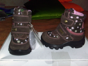 Новые итальянские зимние сапожки Naturino, нам привезли в подарок, а они нам уже были малы(( не знаю как насчет низкой температуры... но от +5-7 и до -10 явно подходят. Размер 20, по стельке 12-12, 5 см,замерить было очень трудно, не подобраться толком))