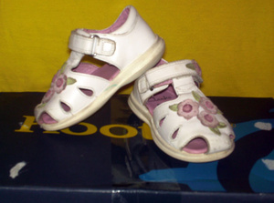 Босоножки Clarks, Англия, состояние среднее. Натуральная кожа. Размер 5, полнота F, по стельке 12,5-13 см. Слегка потемнели кожаные цветочки, и немного обшарпанные носки. В остальном еще весьма хороши :-) Хочу за них 200 р.