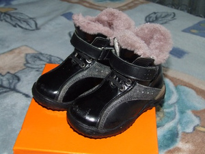 Еще ботиночки зимние ,р-р 20 натуральная кожа,натуральный мех;мех толстый плотный,почти не носили,т.к купили впритык...даже подошва новая еще