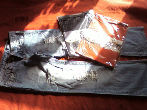 джинсы-гранж, р-р 28, длина шагового шва 76см, от природы рваные на фабрике), 250р