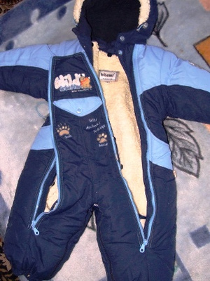 Продам комбинезон - трансформер KIKO р. 68, нижняя часть которого может представлять собой мешок, а может превратиться в две штанины. Это происходит за счет перестежки молний. Трансформер очень теплый, рассчитанными именно на малоподвижного малыша. Цвет болотный зеленый со вставками салатного. Подклад холофайбер сам по себе, в сочетании со съемной меховой подстежкой из шерсти - хорошее решение, тем более что в "облегченном" варианте его можно использовать и в межсезонье. Конструкция - это две молнии по бокам спереди до ножек и 2 клепки под молниями (не поддувает шею), на штанинах внизу плотные широкие резинки пристегивающиеся рукавички и теплые пинетки. На капюшоне есть ушки из кроличьего меха и взади оборка у кармана тоже с кроличьего меха. Состояние отличное, лежали только в коляске. Цена 1300р.Продается