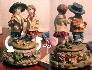В плоскости поворачиваешь мальчика с девочкой и раздаётся музыка типа "старинн. шкатулка".