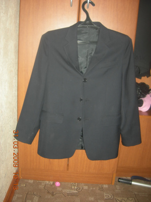 - школьный костюм на плотного мальчика (где-то 152 (156)-80), темно-синий в тонкую белую полоску за 300-500 р., состояние хорошее;