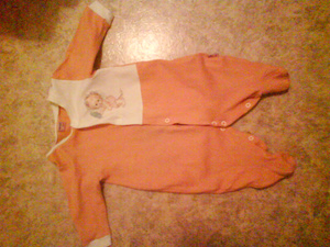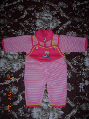 Продам комбинезое der Bar, провезен из Германии. Цвет розовой, внутри - полосаты, на кнопках, на 5-6 месяцев, по спинке 68, рукав 26. Немного носили. Цену не знаю, предлагайте сами